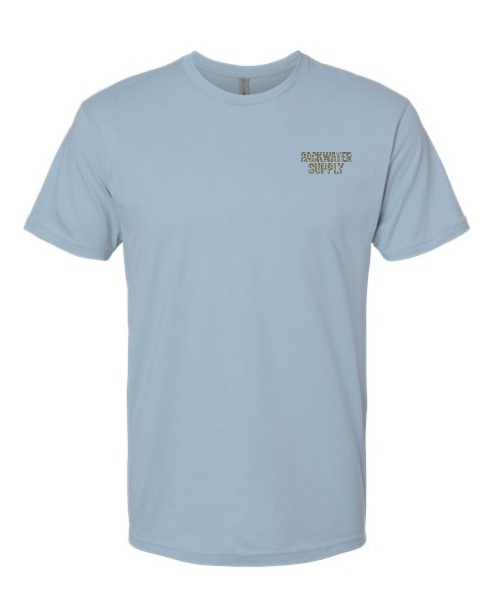 Classic, rugged, and built for the outdoors — the Backwater Supply Duck Camo Logo Tee is made for hunters, anglers, and anyone who lives the backwater lifestyle. Featuring a flying duck over marsh grass with bold camo-print lettering, this tee is the perfect mix of heritage design and modern comfort.